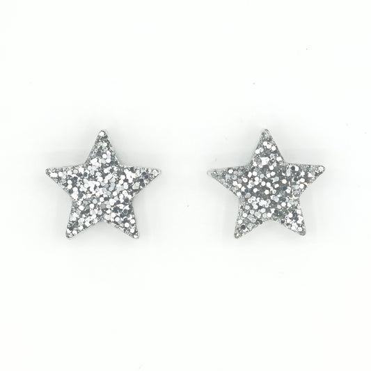 Brinco Estrela Prateada com glitter