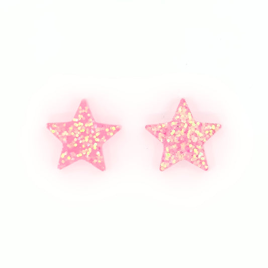 Brinco Pino Rosa Translúcido com Glitter