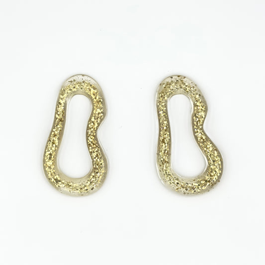 Brinco orgânico com glitter dourado