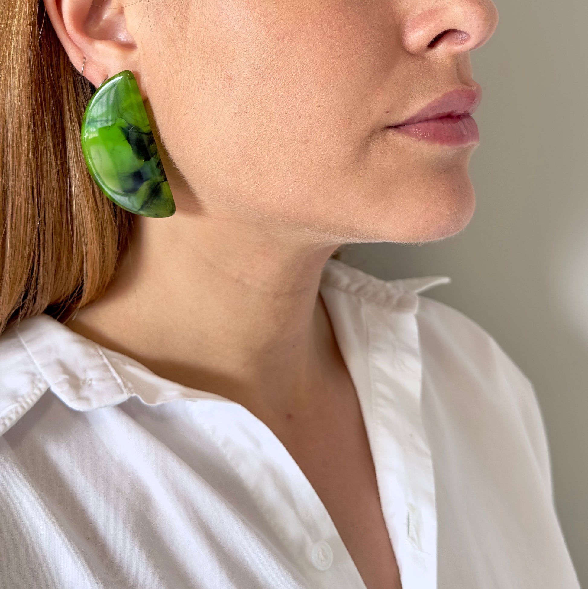 O Brinco Meia Lua Verde Fridali combina formato geométrico suave e cor vibrante. Produzido em resina de alta qualidade, traz leveza e personalidade na medida certa. O fecho em aço inoxidável garante segurança e conforto. Ideal para quem ama acessórios coloridos e contemporâneos.