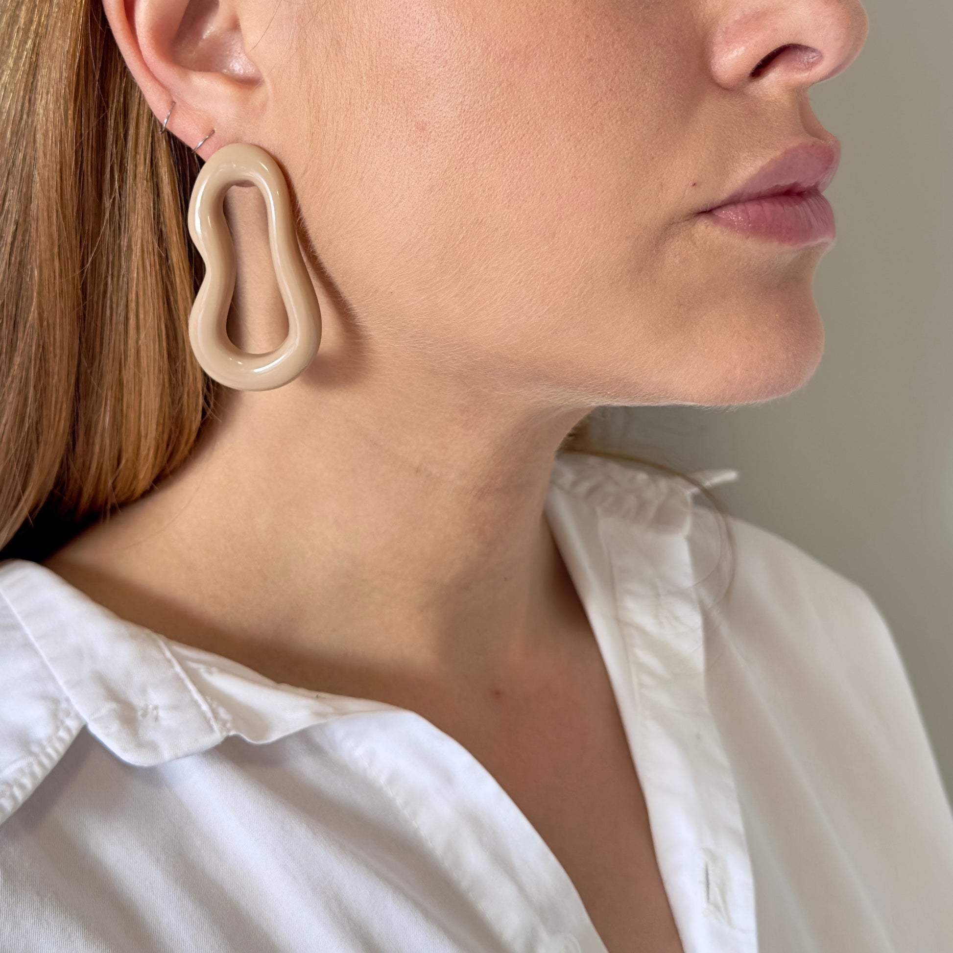 O Brinco Orgânico Nude Fridali tem um design fluido em resina que valoriza qualquer look. Seu tom nude traz neutralidade e sofisticação, ideal para quem busca um acessório versátil, leve e autoral. O fecho em aço inoxidável antialérgico oferece conforto para o uso diário.