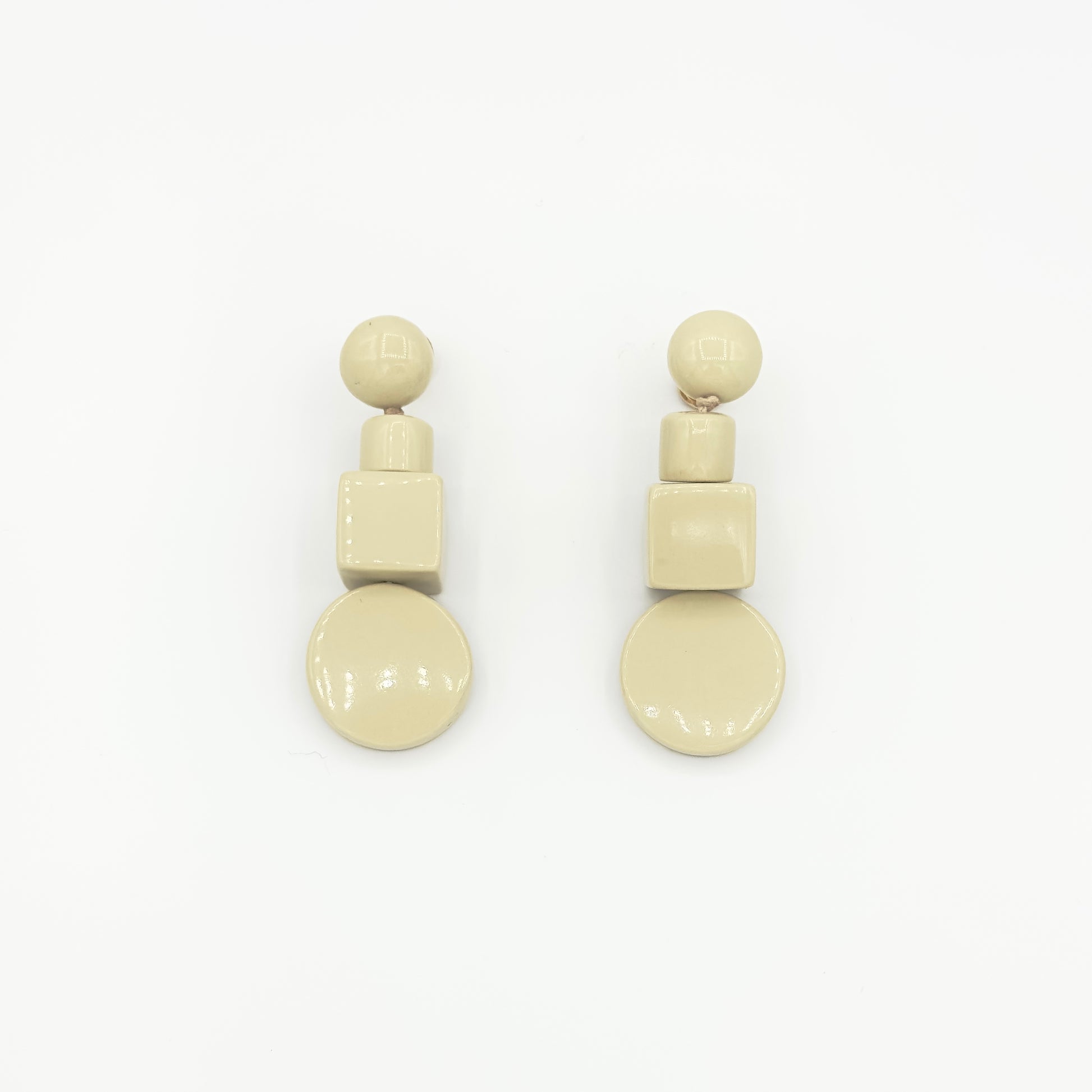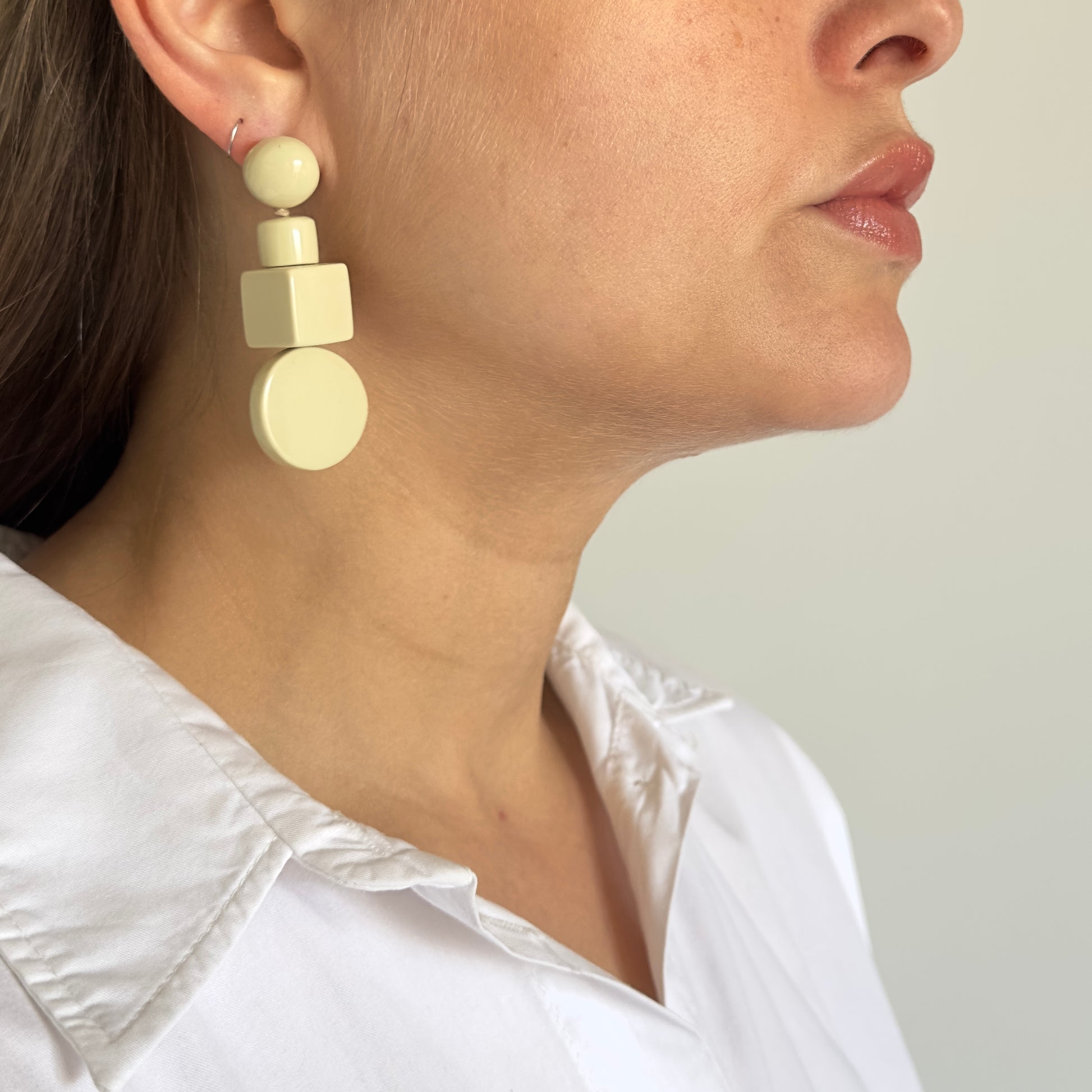Design sofisticado que mistura formas redondas e quadradas em resina marfim. Minimalista, elegante e super leve, combina com qualquer look e traz um toque moderno ao visual.